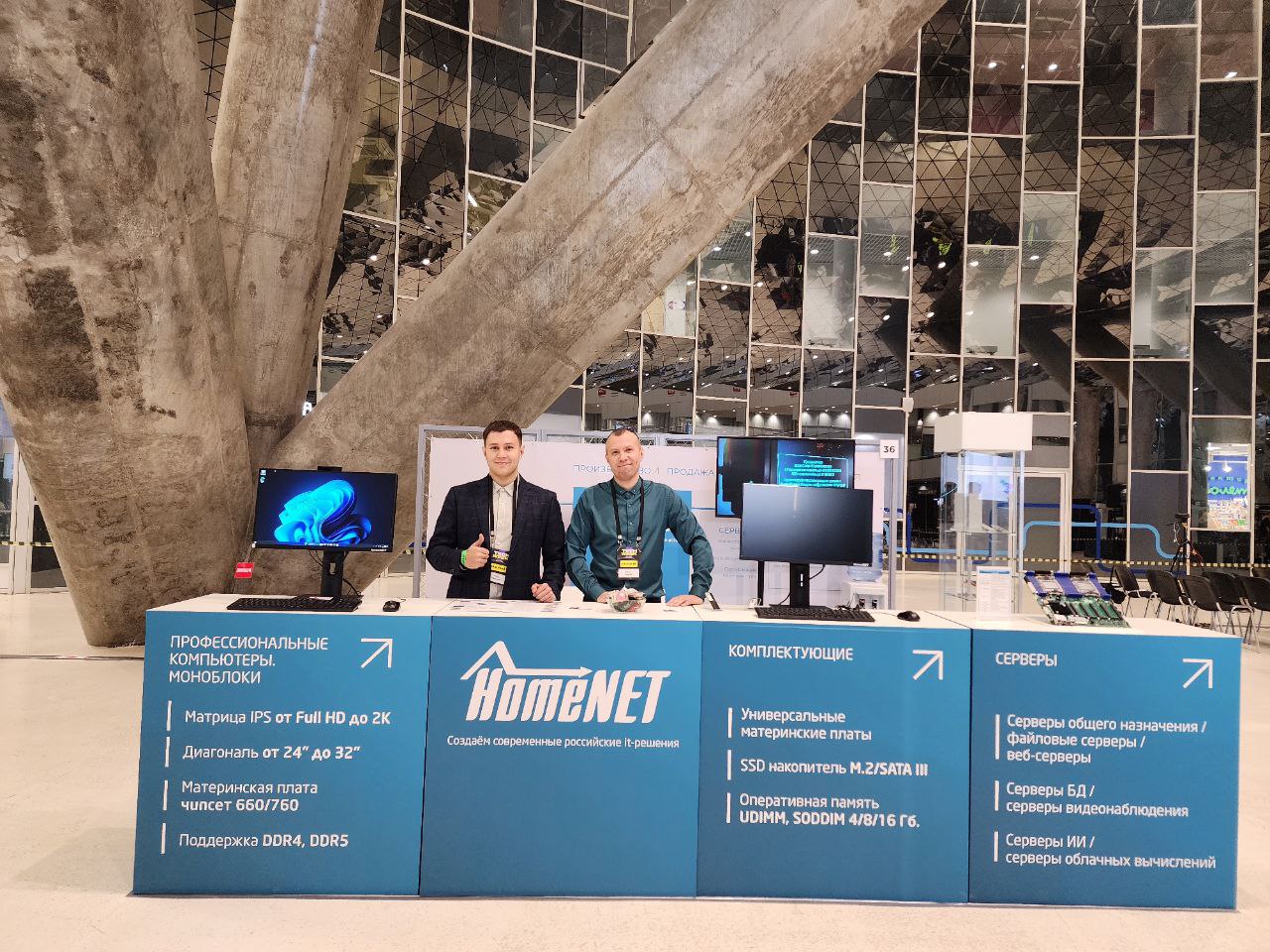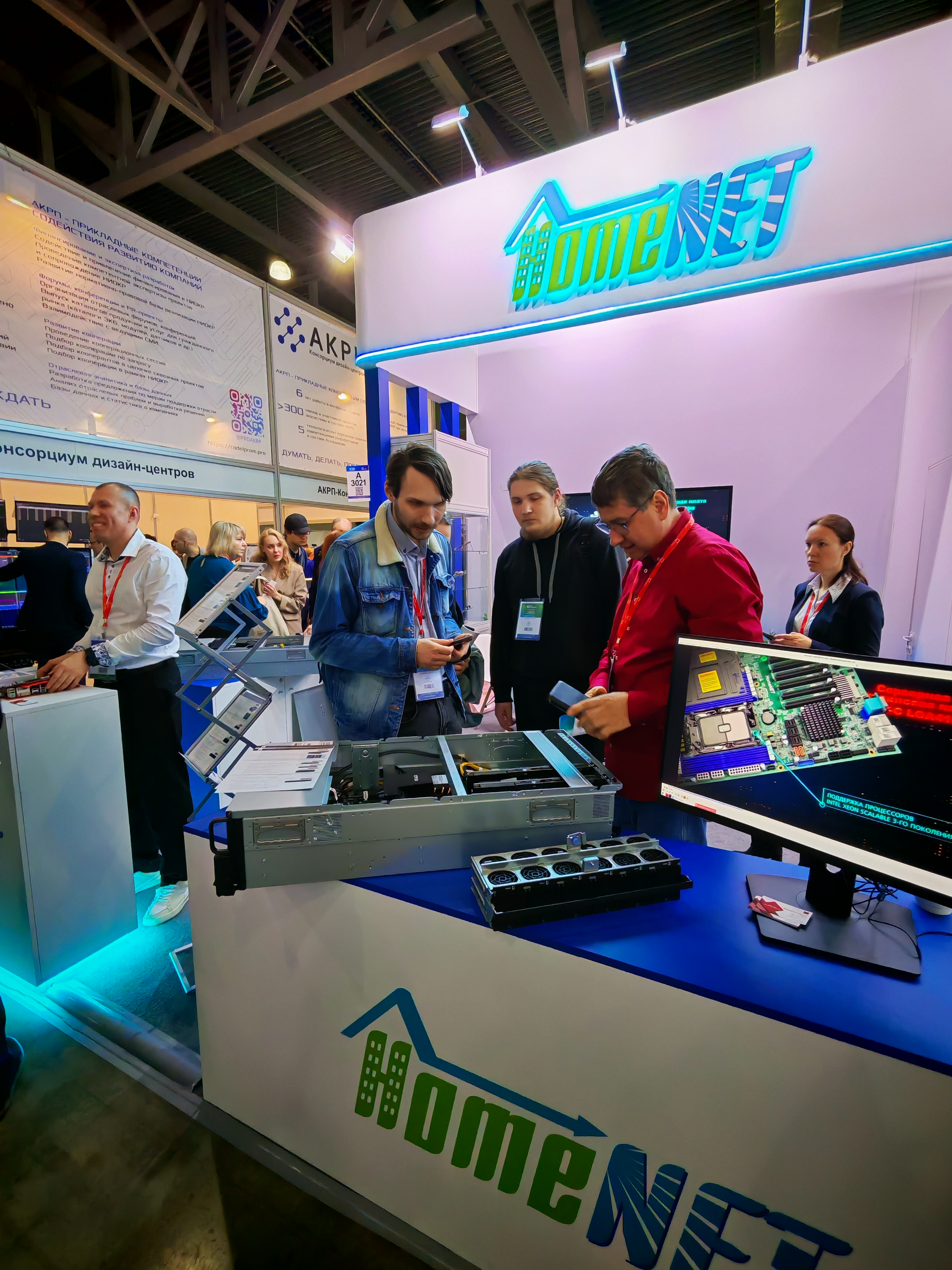 Совместно с партнёрами компания проектирует и изготавливает серверы и серверное оборудование для центров обработки данных, информационных сетей государственных и частных компаний, с различными уровнями информационной безопасности. На выставке был представлен сервер HomeNet модель: HN-ZM60 на базе 48 ядерного отечественного процессора Байкал BE S1000, сервер предназначен для использования в качестве сервера рабочих станций, сервера хранения данных, Веб-сервера, сервера приложений, прокси сервера, почтового сервера, файлового сервера, сервера баз данных, сервера сетевой политики. На данное оборудование получено заключение о подтверждении производства промышленной продукции на территории Российской Федерации и внесено в реестр. Также был представлен сервер HomeNet на базе процессора Эльбрус, модель: HN-ZE70 с отечественной начинкой и полностью отвечающий современным требованиям информационной безопасности.
